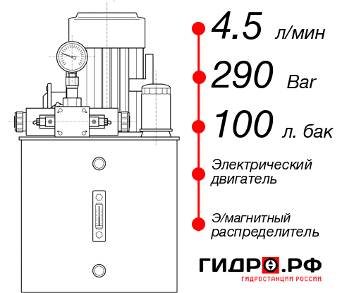 Маслостанция гидравлическая НЭЭ-4,5И2910Т с давлением 290 кг/см2 и производительностью 4.5 л/м. В конструкции применён электрический привод и гидробак на 100 л. Цена по прайсу с доставкой до цеха в Сосновом Боре 102604 руб. Популярные дополнительные опции: температурный контроль, датчик давления, насос ручной (дублирующий), контроль загрязнения фильтра, удержание давление гидрозамком.